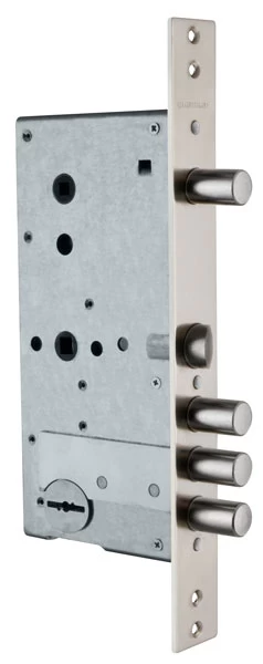 ЗВ 5015 - Замок врезной сувальдный под ручку, с задвижкой. Реверсивная защелка, переворот защелки осуществляется без разбора замка. Замок серии Strong Security, 3-ой класс безопасности. Повышенная защита от наиболее распространенных методов вскрытия: защита от самоимпрессии – втулка на корпусе и крышке замка; защита от вскрытия отмычкой – ложные пазы на стойке и сувальдах, увеличенная жесткость пружин сувальд; защита от «свертыша» – ослабленный зуб рейки хвостовика; защита от взлома – при полностью выдвинутых ригелях замка, 30% их длины остается в корпусе замка, усилена конструкция засовов; защита от высверливания – внешняя бронепластина, закаленная стойка рейки хвостовика; защита от вандалов – отсутствует нижняя стенка корпуса замка. Предназначен для установки в металлические двери, шкафы и сейфы.