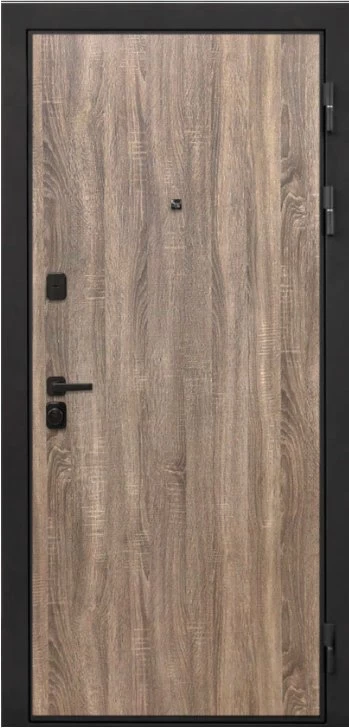 Дизайнерская входная Дверь Интекрон Профит Black (фурнитура черная) Дуб турин класса Люкс с несколькими листами стали, звукоизоляцией и теплоизоляцией. Утепленный короб и полотно защитят от сквозняков и шумов. Модель не только надежная, комфортная, защищенная и высочайшего качества, но и очень красивая! Будет отлично сочетаться с интерьером дома, квартиры или офиса. Сейчас действует выгодное предложение по цене: 77 287 руб.